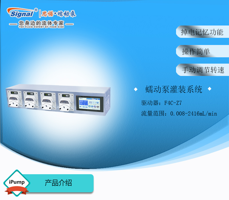 此灌裝系統由4通道組成,通道數量可定制,大可擴展至32通道;可安裝YZ15、YZ25泵頭;