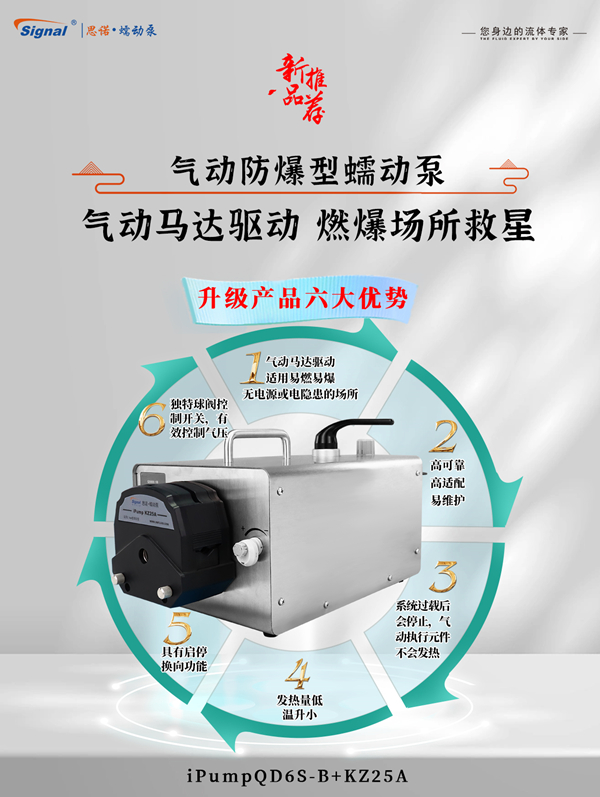 氣動防爆蠕動泵個優點是其效率。由于蠕動泵采用的是一種連續、脈沖式的輸送方式,它能夠實現恒定的流量輸送,高達98%,大大提高了工作效率。與傳統的離心泵相比,氣動防爆蠕動泵能夠減少液體剪切力,降低液體的泵送能耗。此外,由于它不需要安裝閥門和管道,維護起來也更加方便。